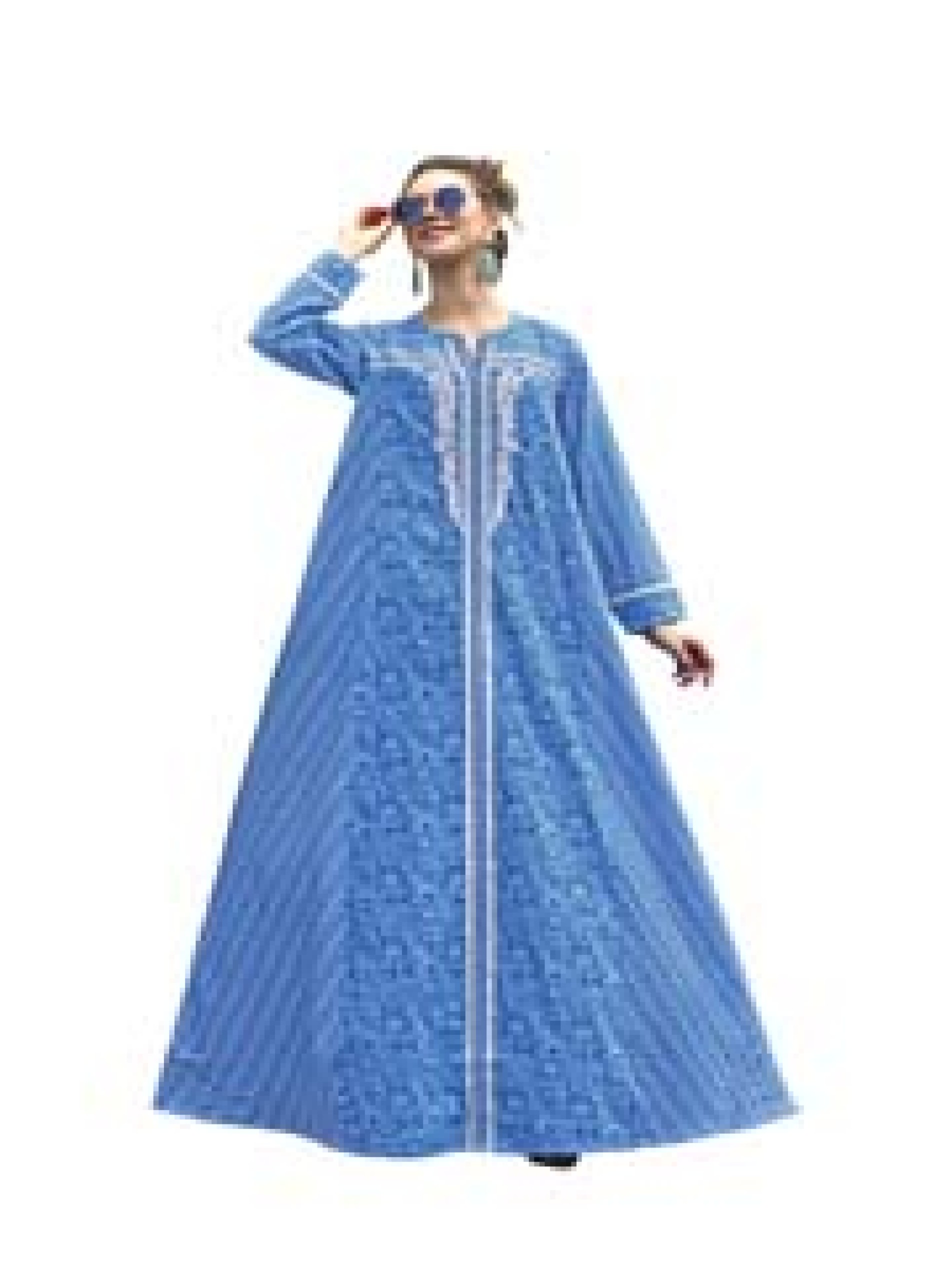 هذه الجلابية ذات القَصّة المُتَوَسِّعة الجذابة مصنوعة من القطن الناعم القابل للتنفس وتتميز بلون أزرق جميل. تكمل الطبعات الزهرية الساحرة مع الخطوط المائلة على الجانبين، مما يضيف لمسة ديناميكية. يعزز العمل بالدانتيلا والتطريز التصميم العام، مما يجعلها خيارًا مثاليًا للمناسبات الصيفية غير الرسمية.