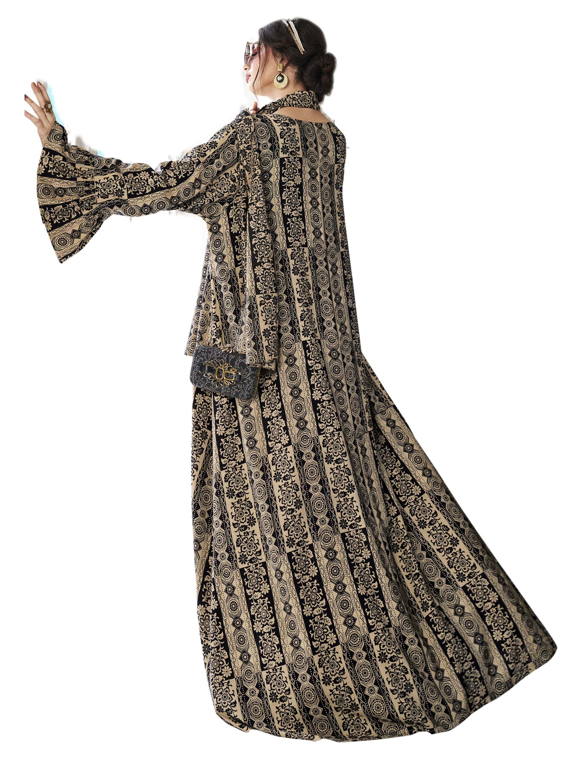 الأسود يليق بك! تألقي في هذه الجلابية القطنية الرائعة، مصممة بنقوشات جذابة من الزهور باللونين الأسود والفضي لتمنحك الشعور بالغموض والثقة!