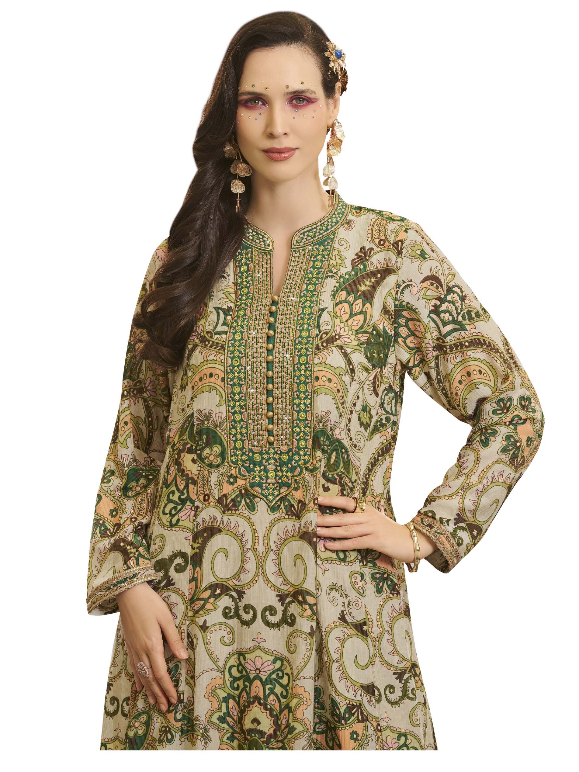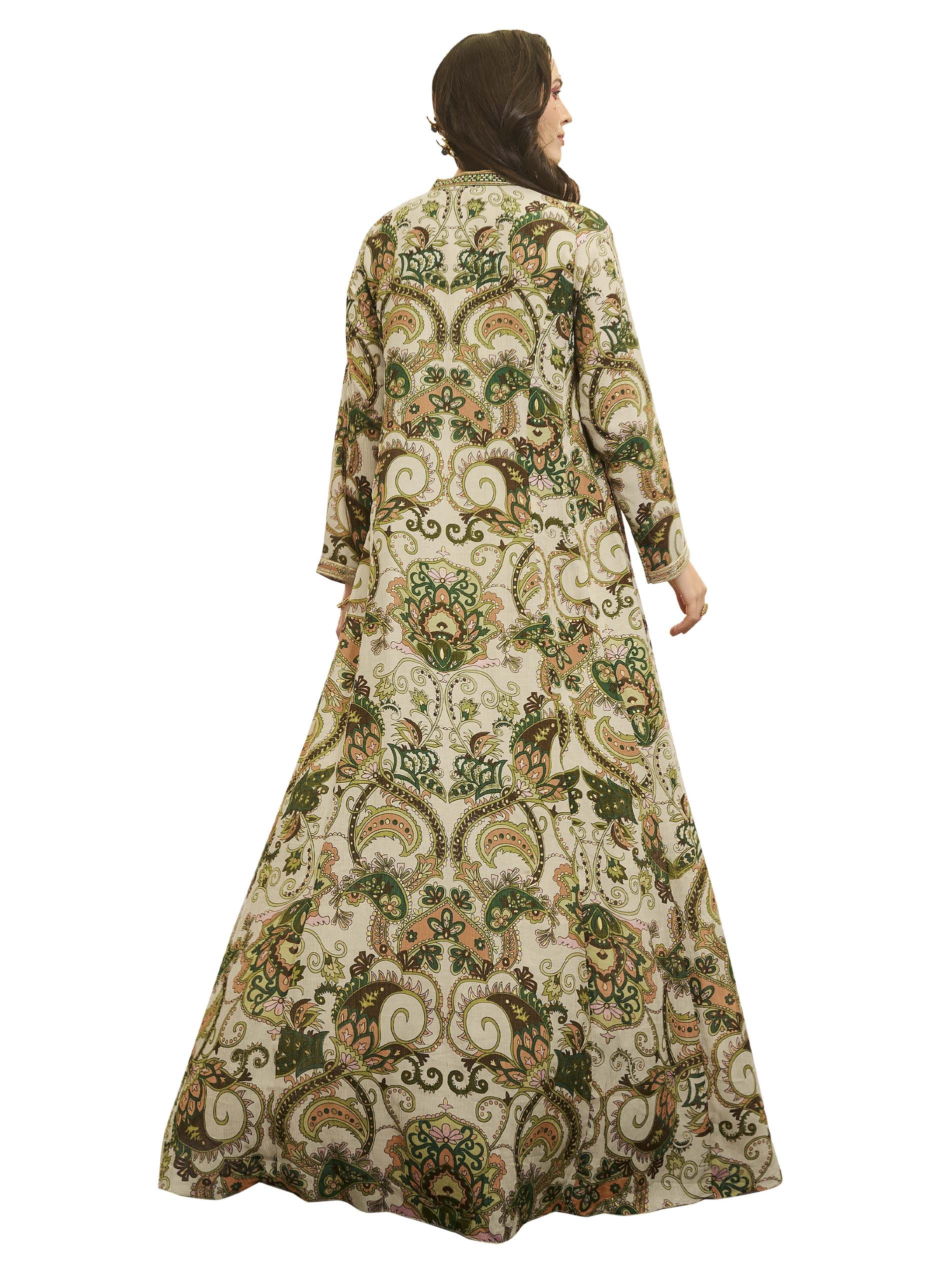 اذا كنتي من محبين التميز، هذه الجلابية المبهجة تعتبر الاختيار الأمثل لك، فهي مصممة من القطن بنقوشات ملونة وفريدة من نوعها، يضفي عليها اللون الزيتي لاطلالة فريدة من نوعها في رمضان.