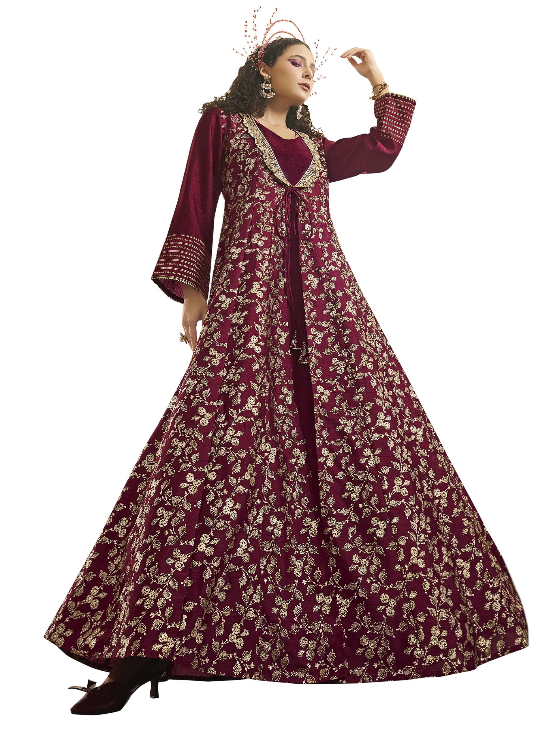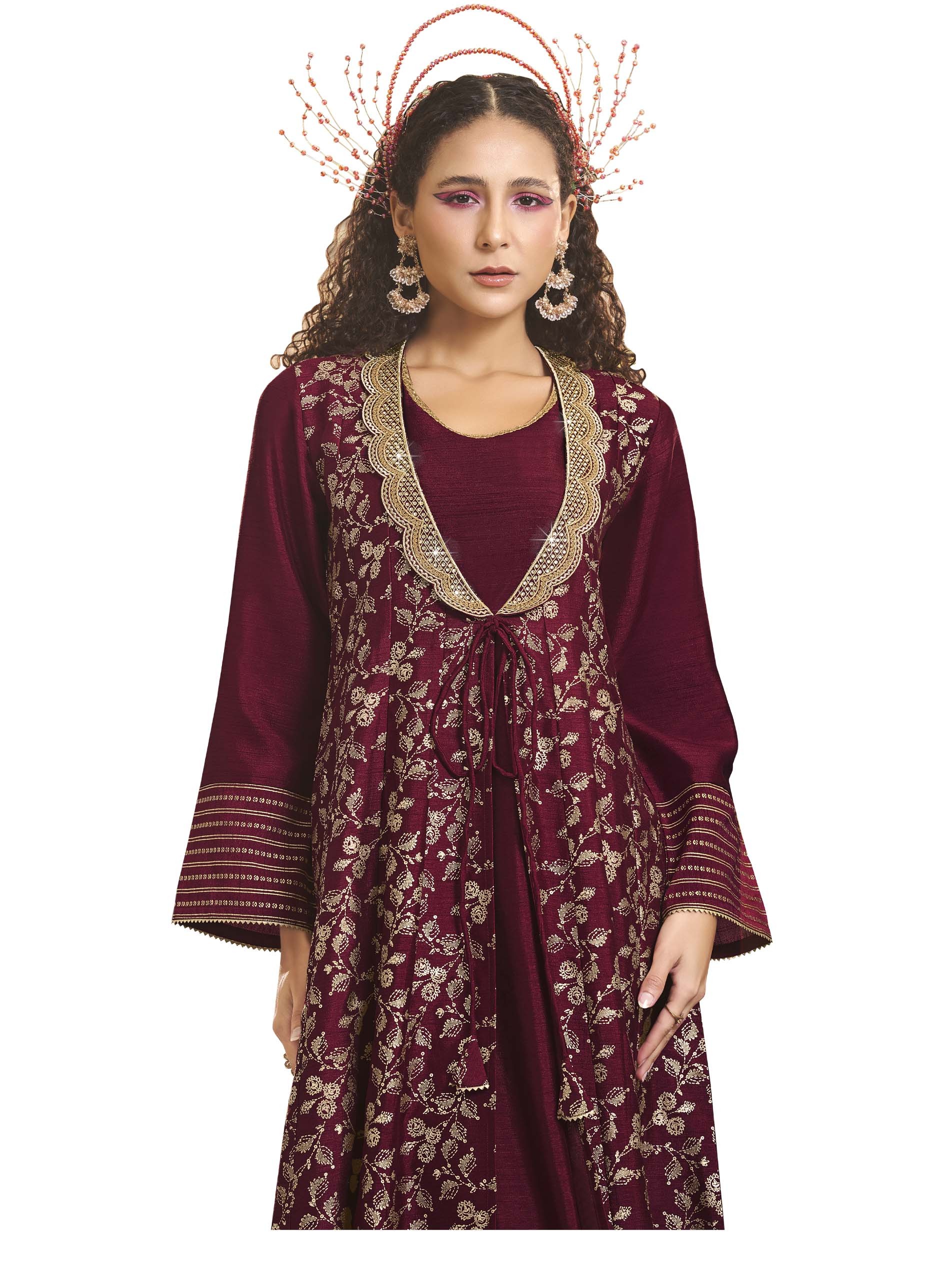 جلابية ماكسي طويلة باللون النبيتي ذات تصميم عصري، مصممة من خامة الساتان و مزودة بنقشة الزهور البيضاء مع أكمام طويلة وفتحة رقبة مميزة.