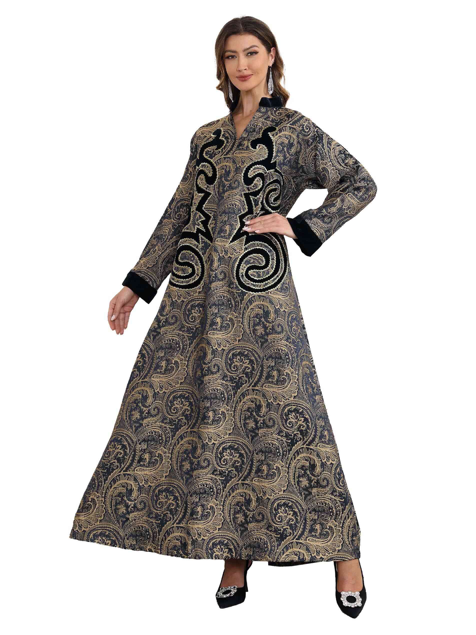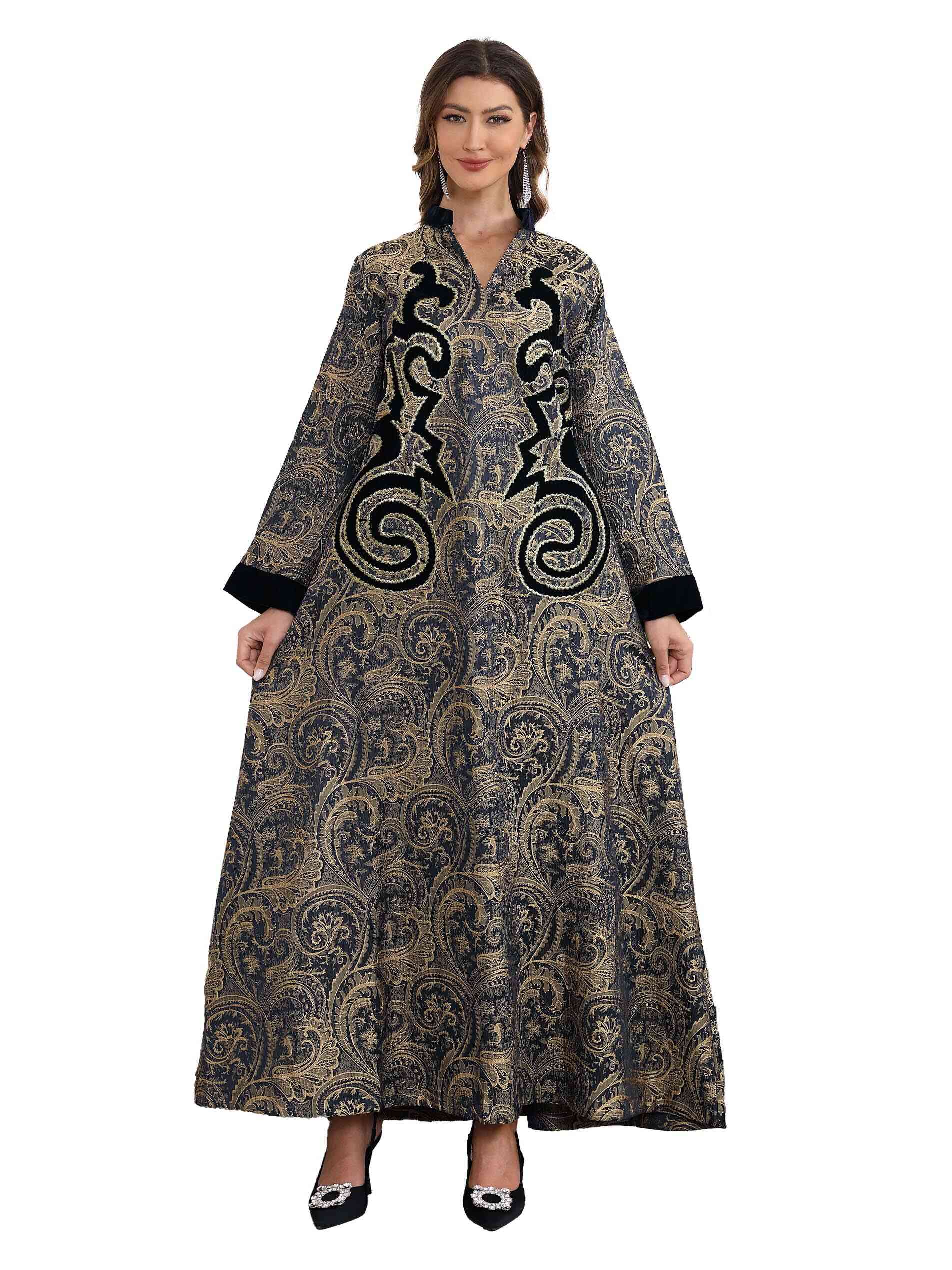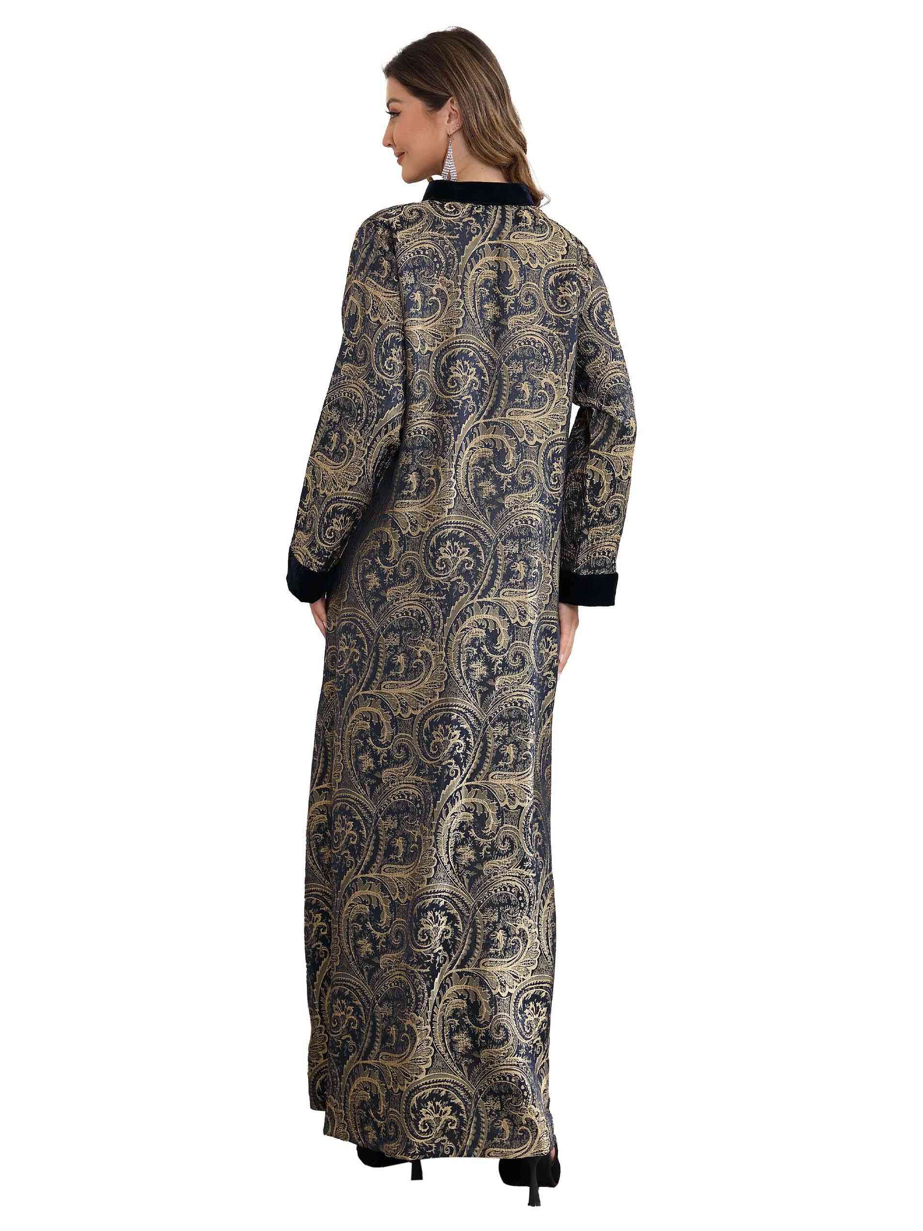 الأزرق الداكن هو اللون المناسب لأولئك الذين يريدون نشر هالة من الاحتفالية المطلقة هذا الشتاء. جلابية سارة المصممة باللون الأزرق الداكن هي قطعة رائعة وأساسية في الشتاء، مصممة مع طباعة الأزهار باللون البيج ولمسة من اللون الأسود مع أكمام طويلة لتمنحك الشعور بالراحة والأناقة في نفس الوقت.