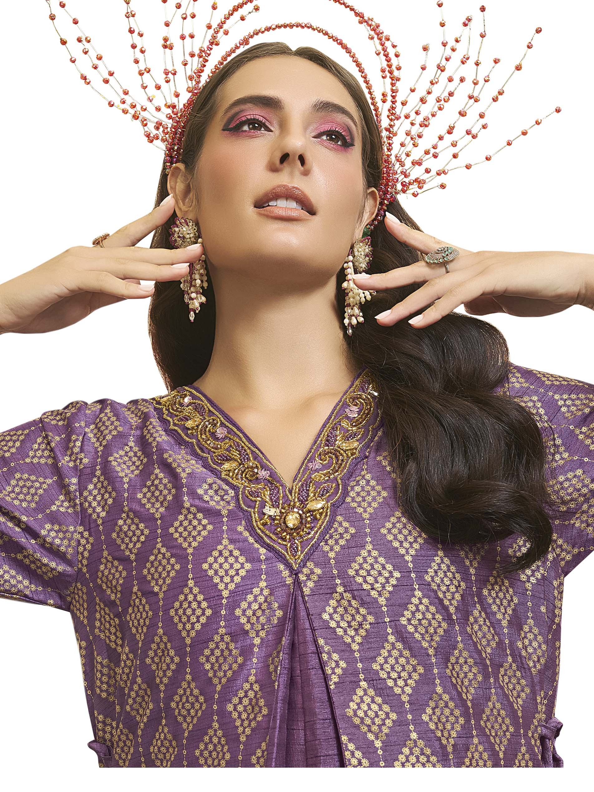 If you are looking for a royal look, this spectacular cotton purple jalabiya is the perfect choice for you, designed with long sleeves and unique gold artwork.