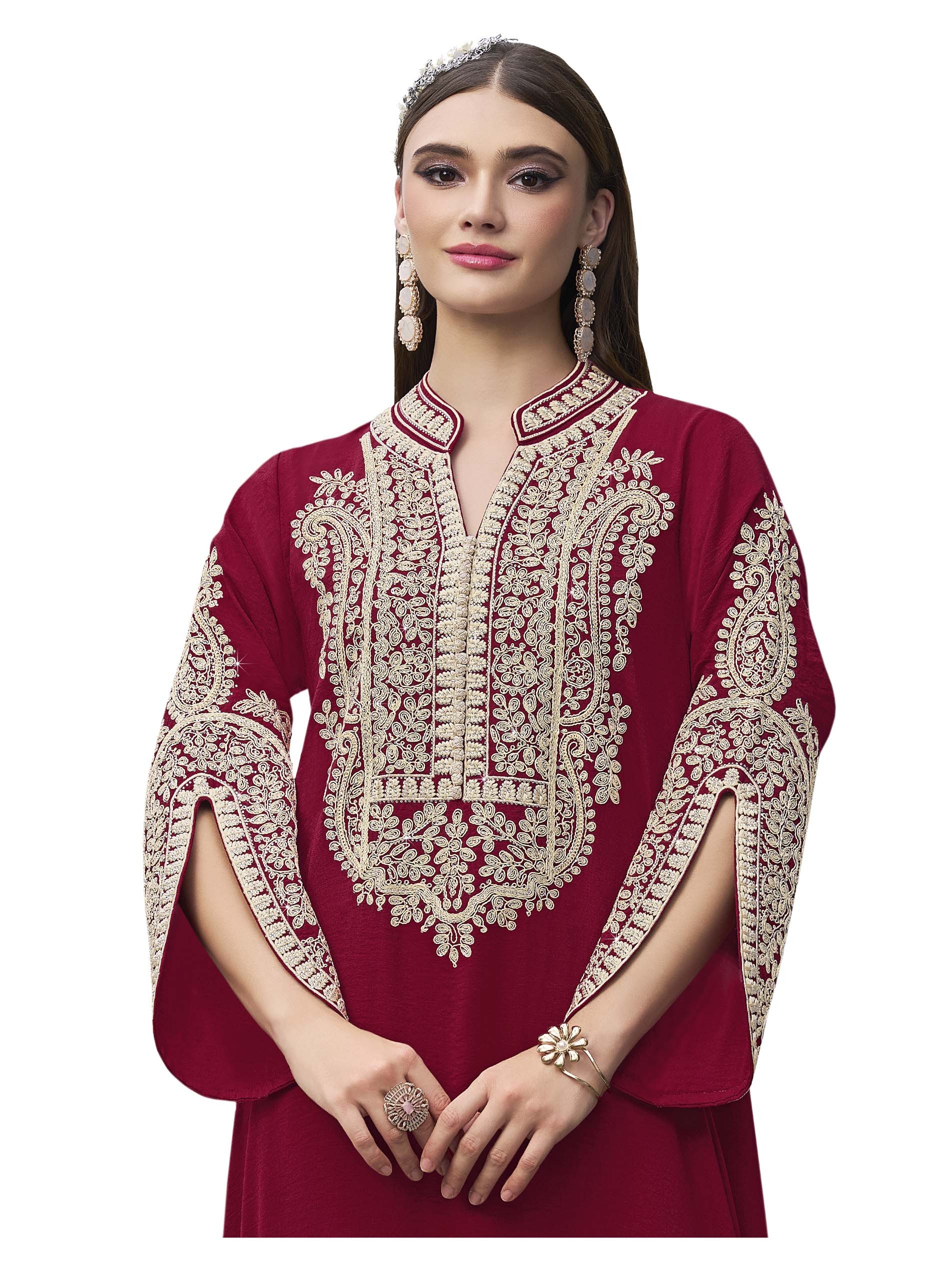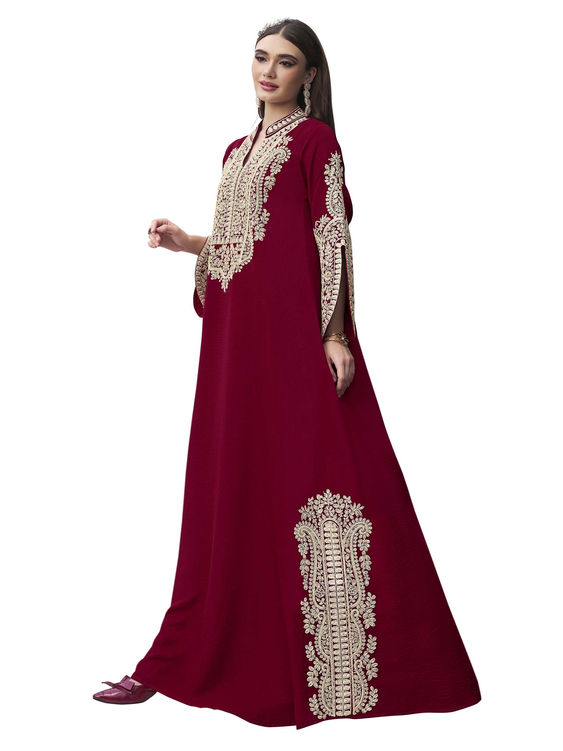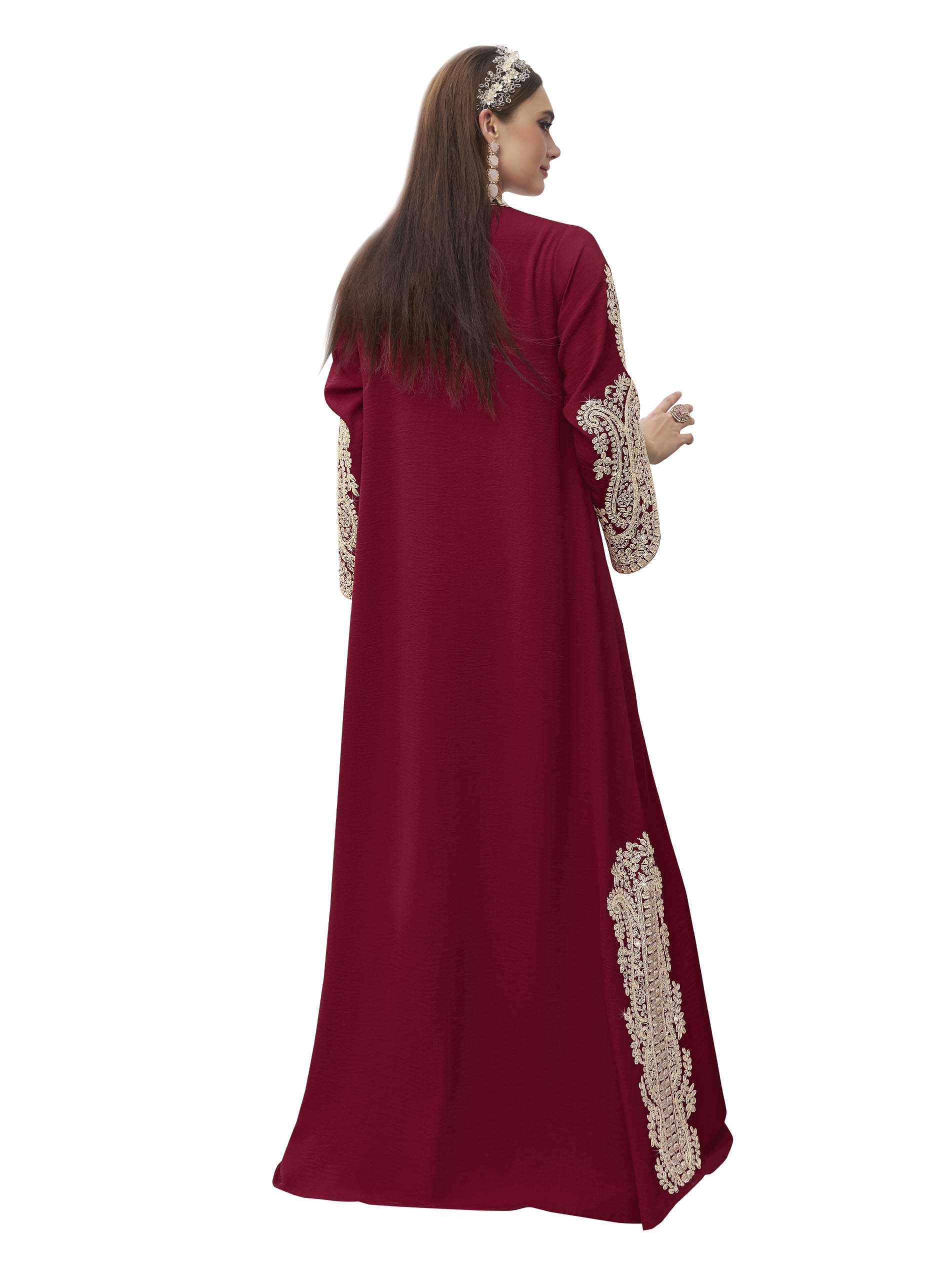 Our soft cotton burghandy jalabiya, is designed with wonderful white embroidery, making it the perfect choice for Ramadan gatherings and occassions.