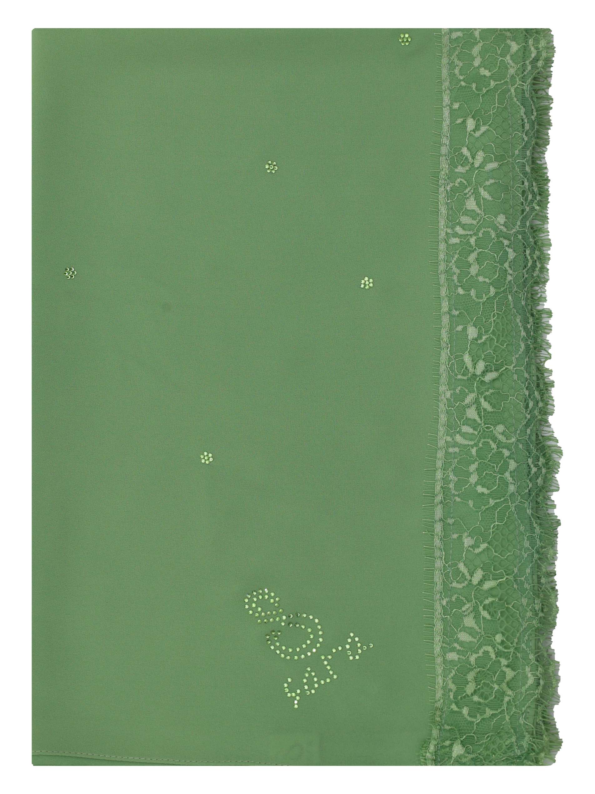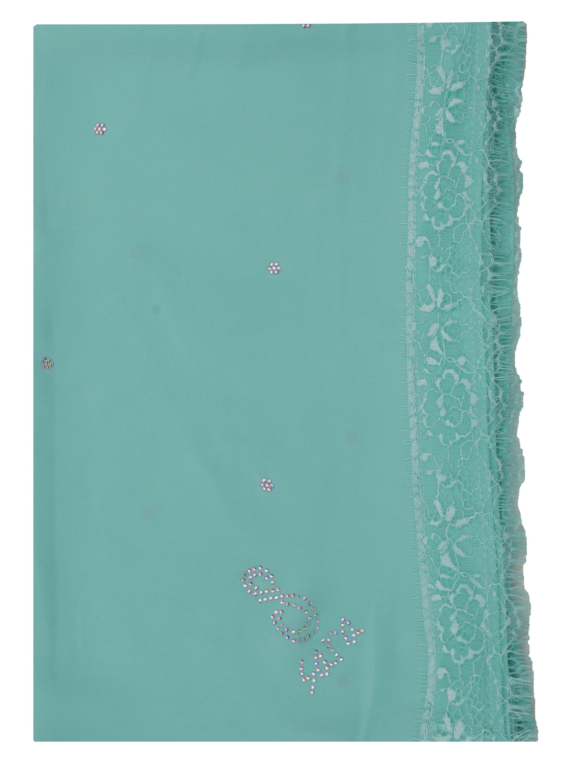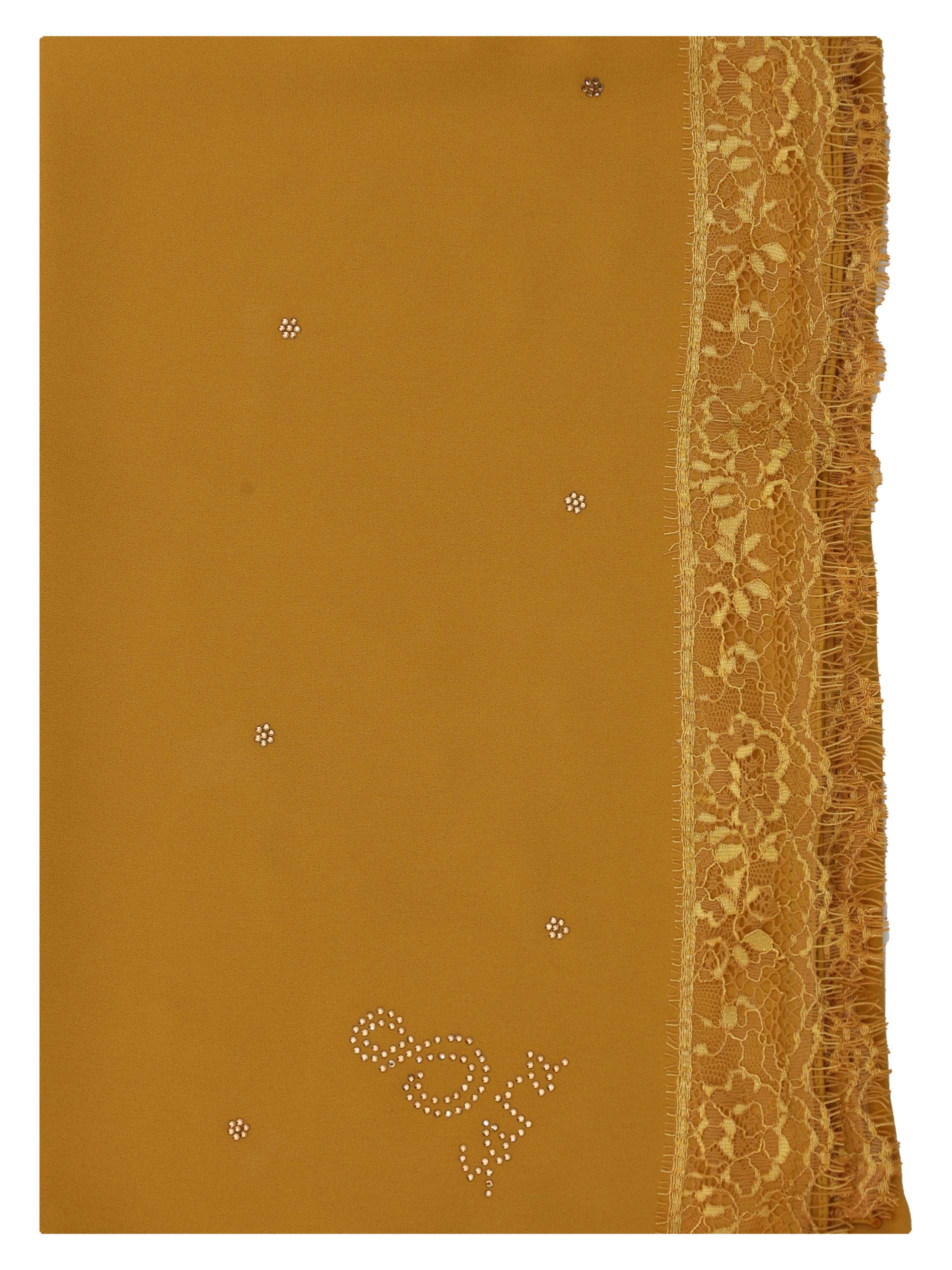 POLY GEORGETTE SCARF WITH LACE AND STONE DESIGN