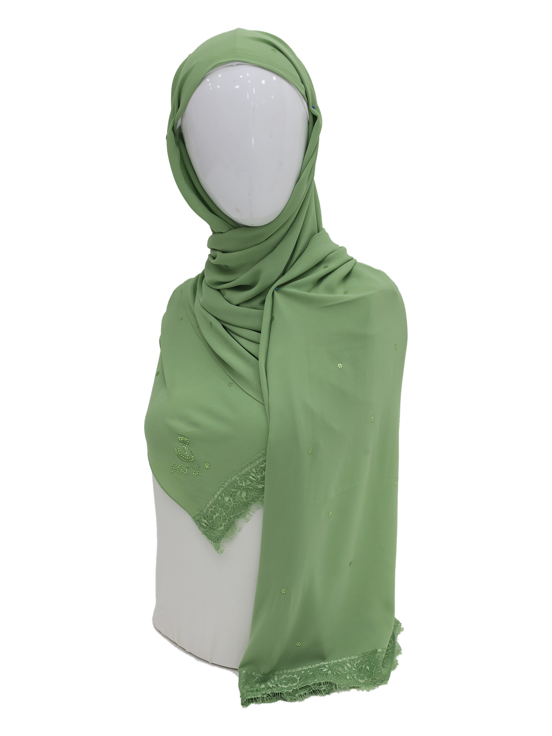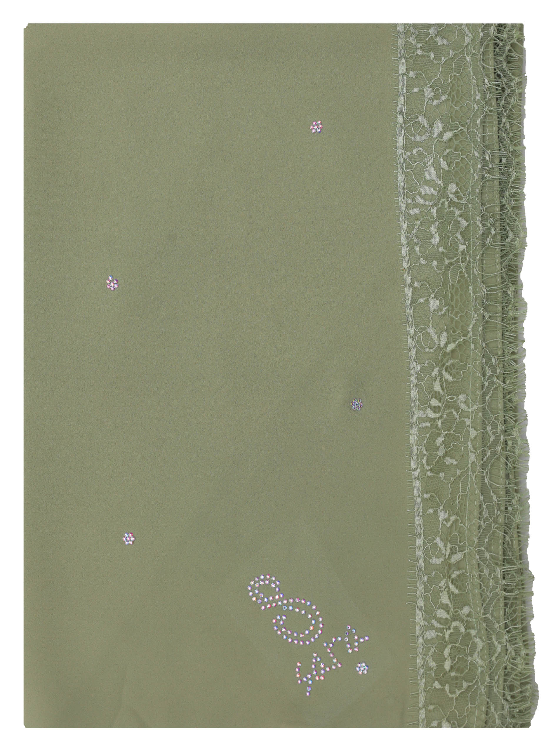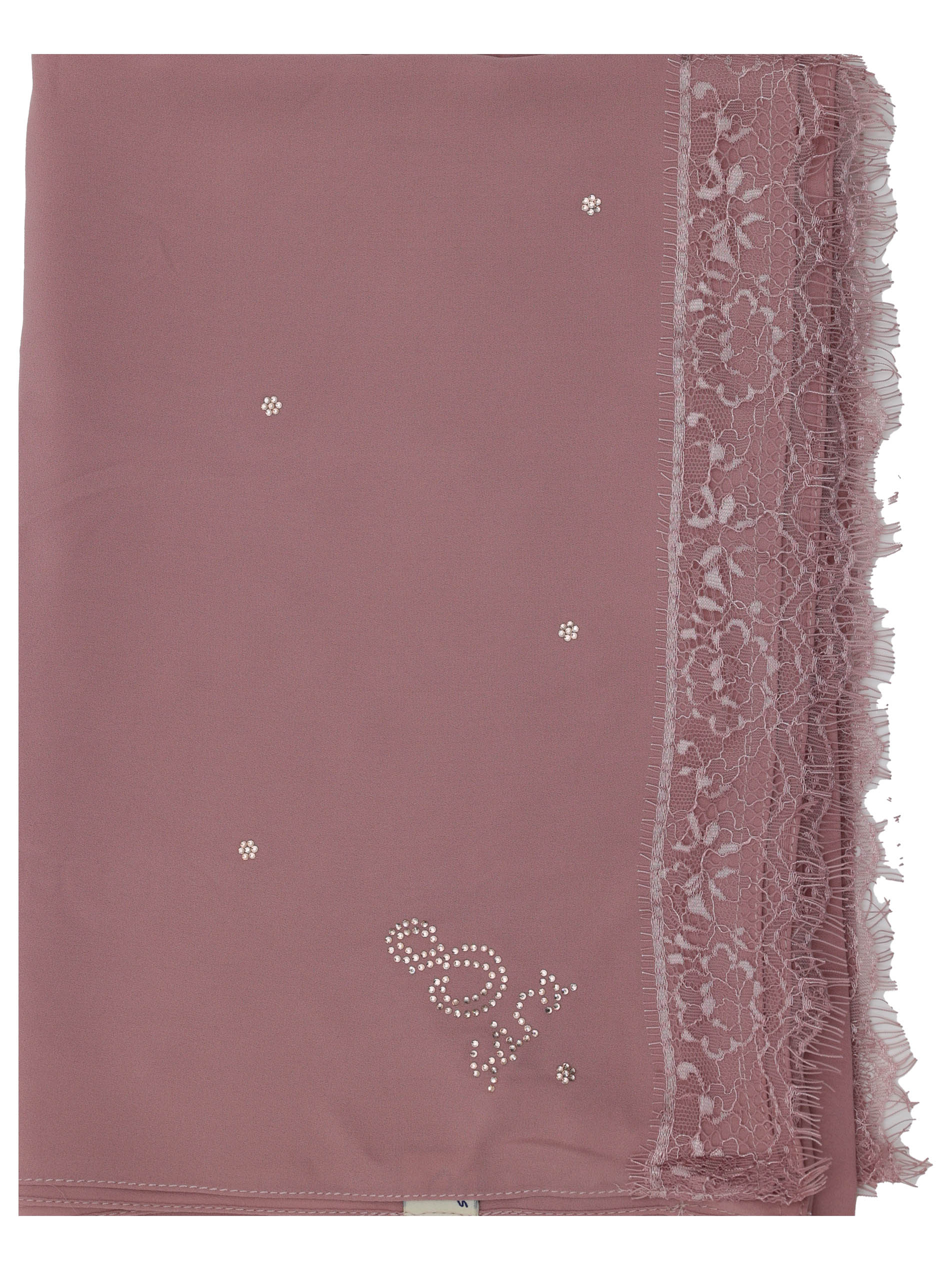 POLY GEORGETTE SCARF WITH LACE AND STONE DESIGN