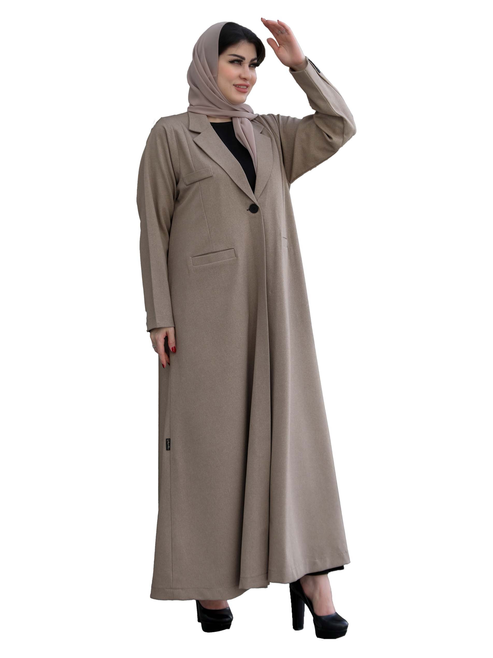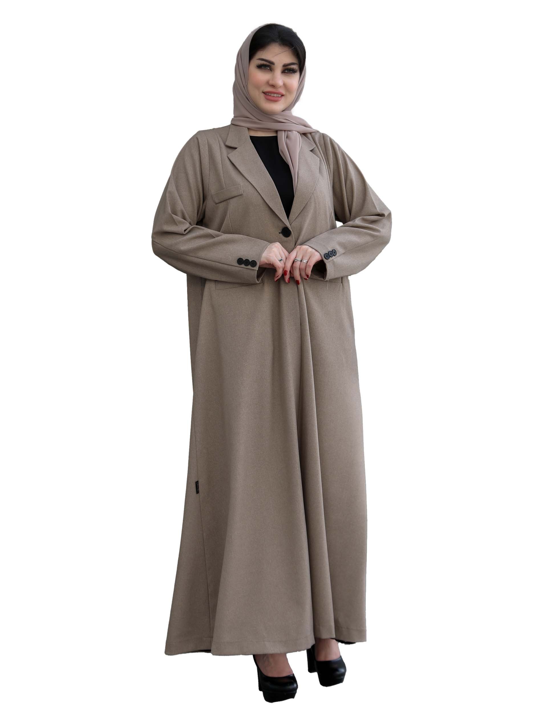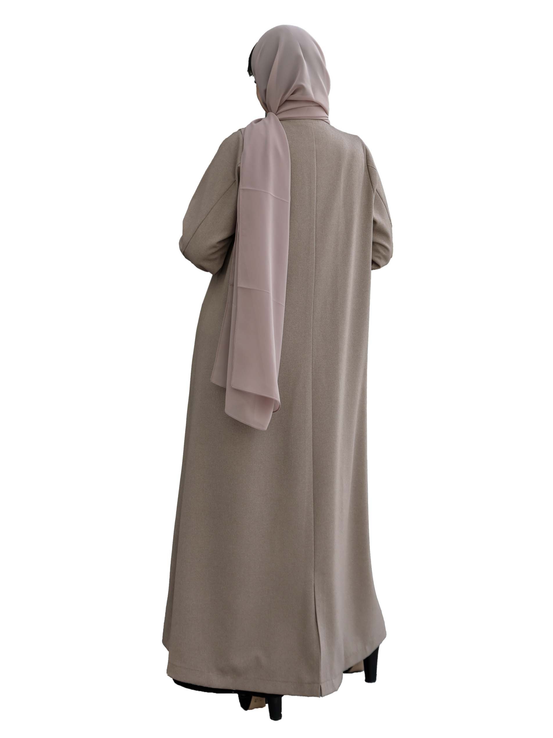 عباية كاجوال بقصة جاكيت ملونة باللون الرمادي الفاتح تأتي مع أكمام طويلة مزينة بأزرار سوداء اللون لاطلالة فخمة في مناسباتك اليومية.