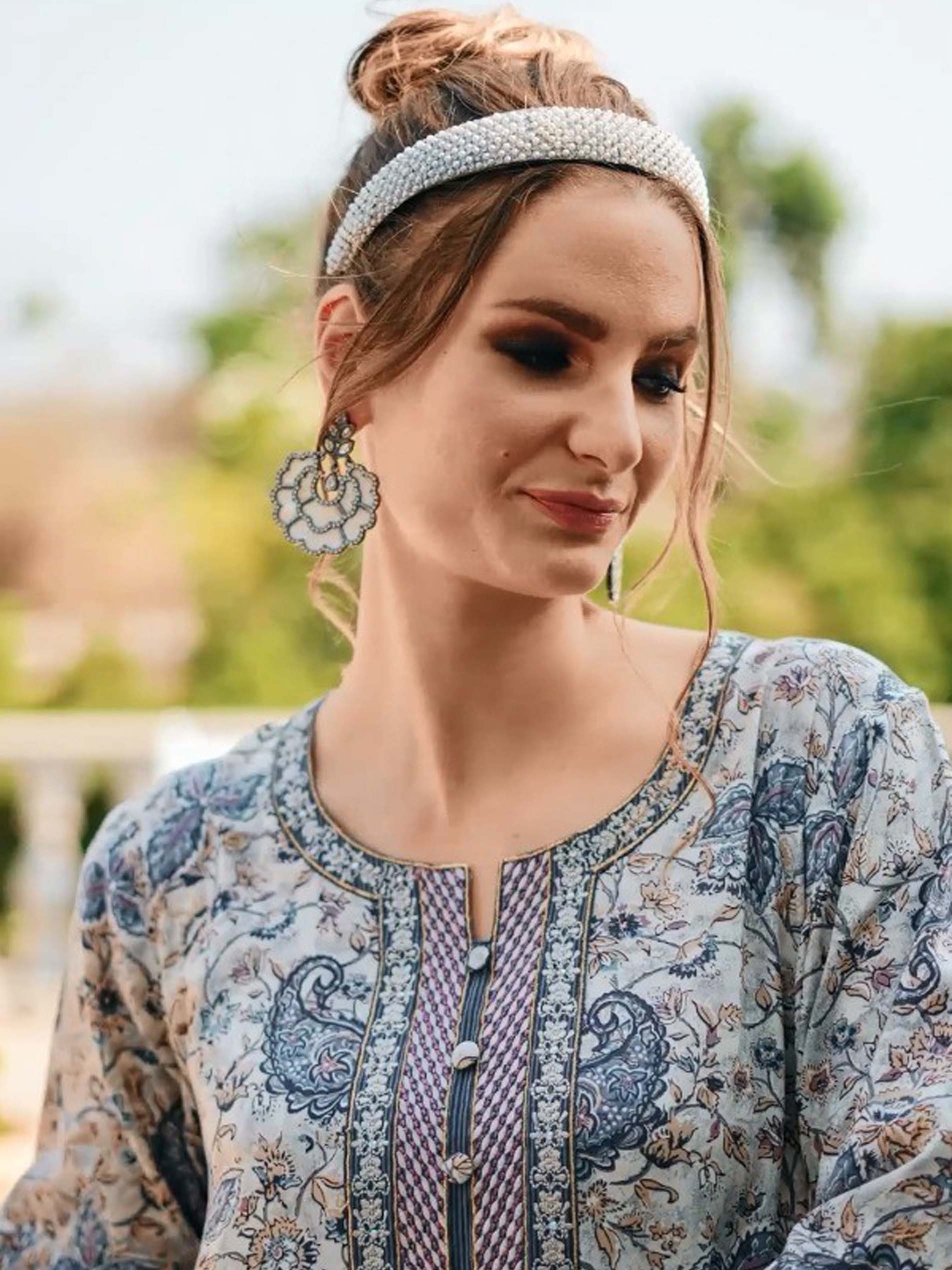 تألقي بارتداء جلابية مصممة من قماش الرايون ومطرزة بنقوشات متنوعة مع أزرار أمامية وتطريز على الصدر