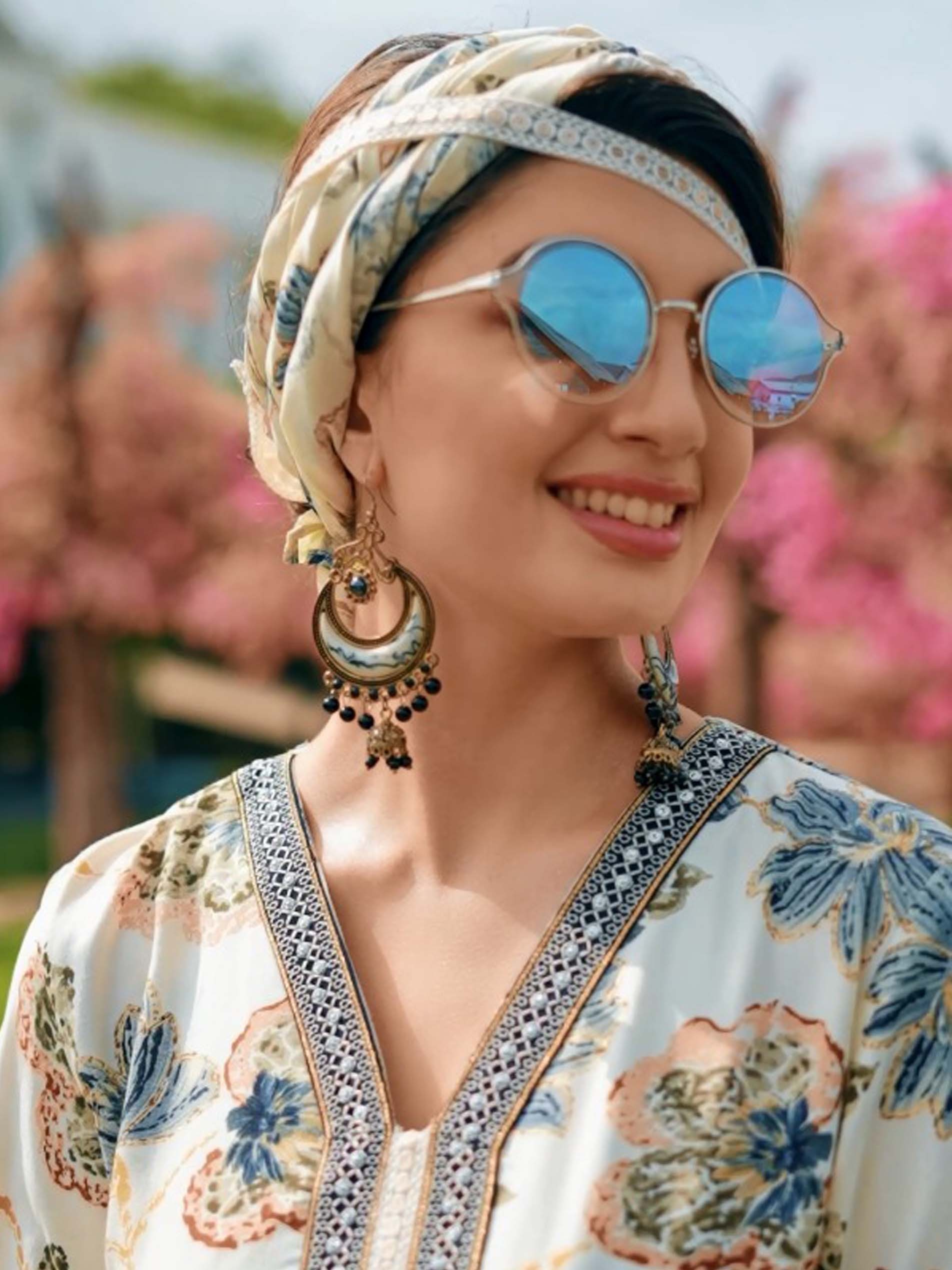 جلابية من القطن بيضاء اللون مصممة لمحبي البساطة والأناقة..مزودة بنقشة الأزهار الزرقاء مع تطريز مميز يمتد بطول الجلابية.