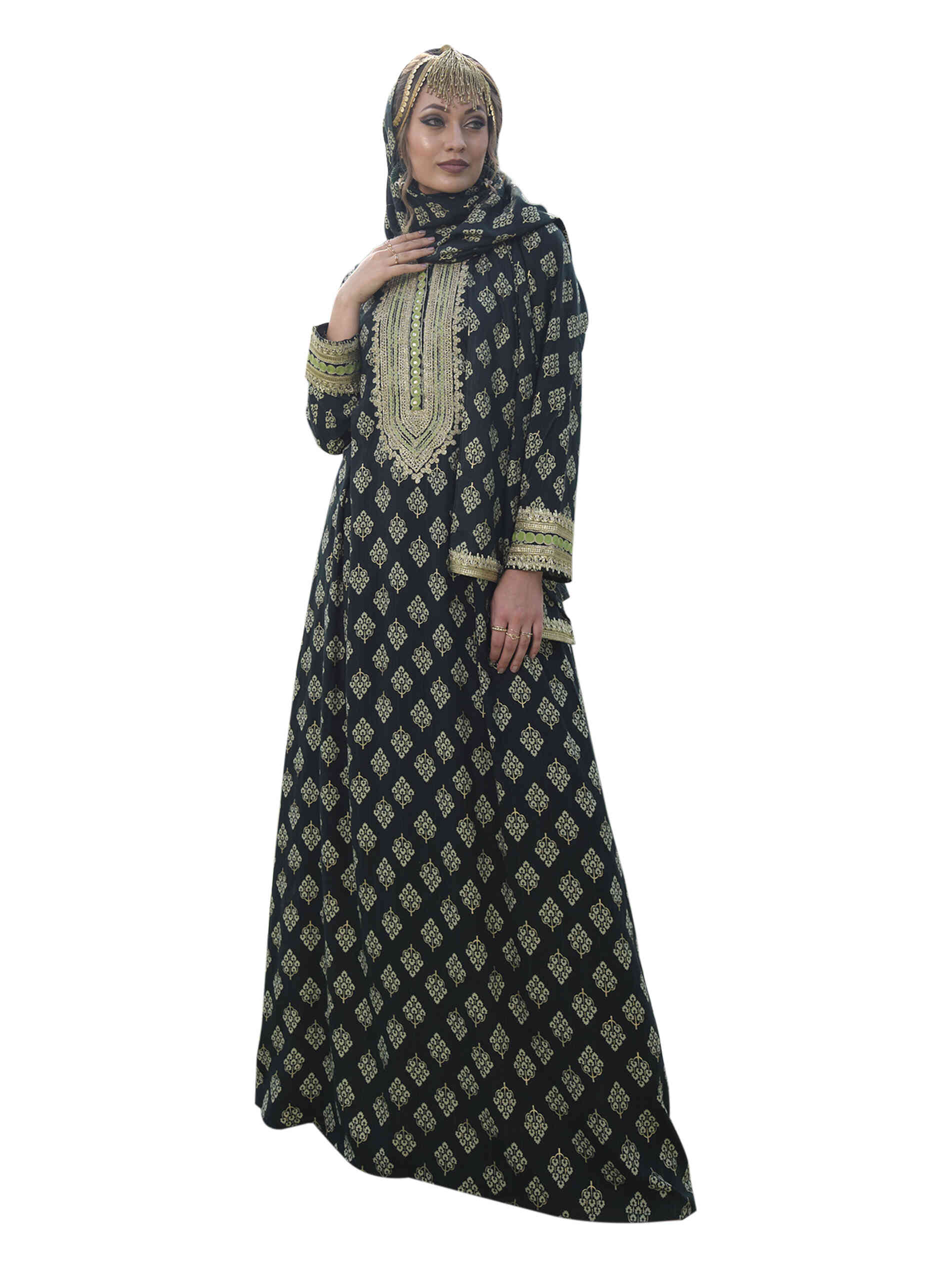 Ikat print is done with a technique called resist dyeing. However, it makes this dark green daraat look absolutely irresistible on a viscose fabric. styled in a notch neck the daraat wears a look of utter grace. The full sleeves and A line cut add to its glam.